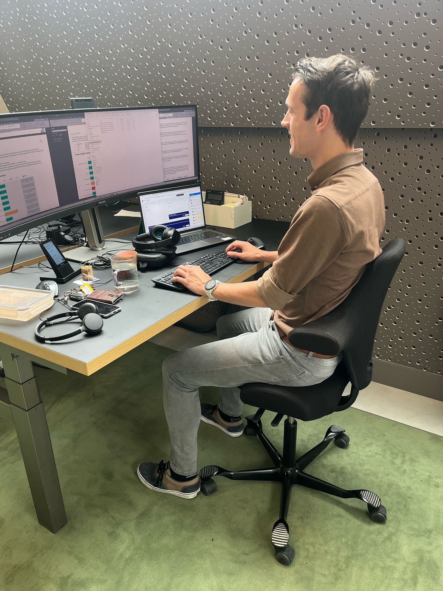 Elisabeth: "Je zit er meteen bewuster op. Opvallend waren de goede ondersteuning van de onderrug en het feit dat je iets meer met je benen uit elkaar zit dan je gewend bent op een traditionele bureaustoel."